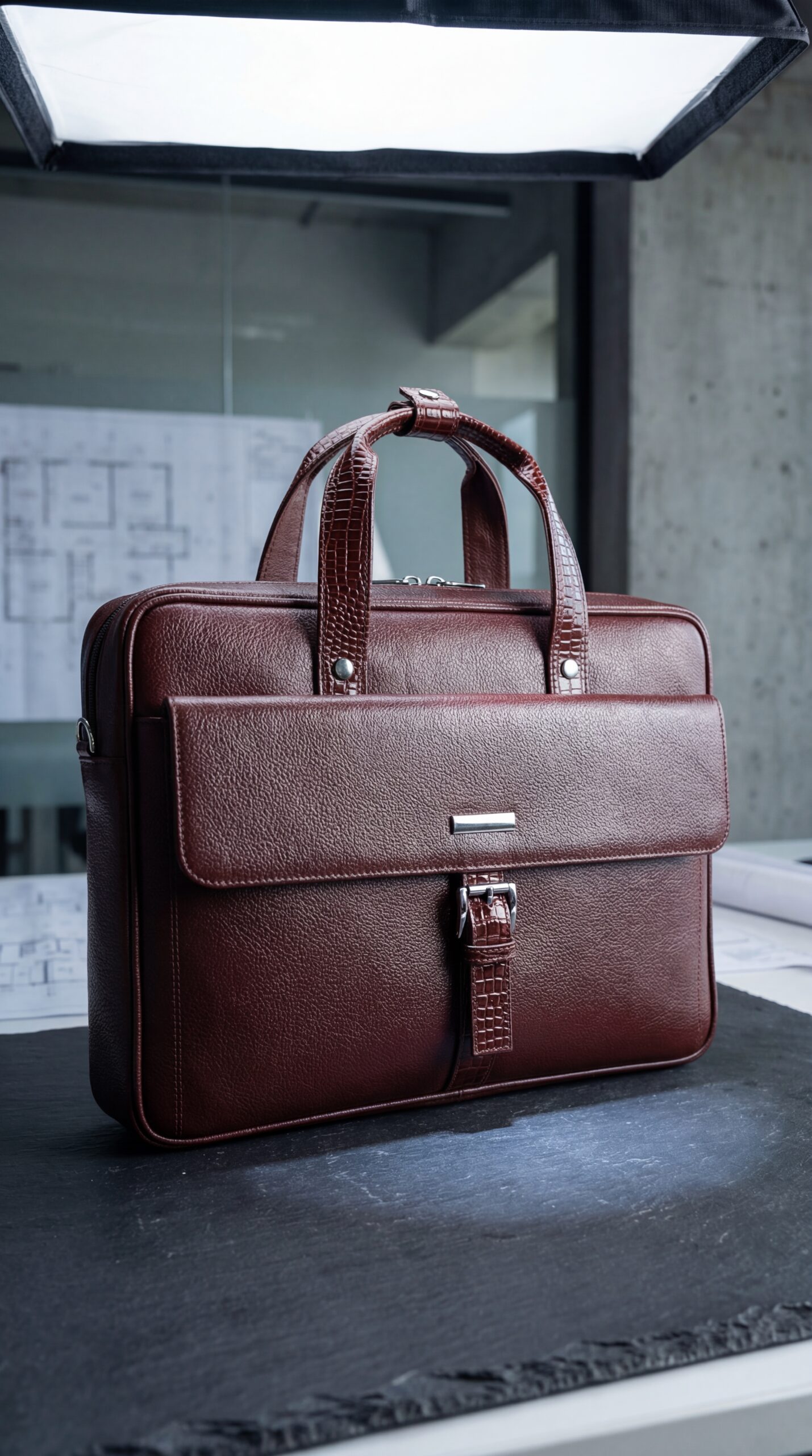 Oxblood leather carries weight. Not just physical heft, but historical gravity—the kind found in parliamentary chambers and corner offices where decisions echo through decades. The Statesman Briefcase is cut from vegetable-tanned hides that have been hand-burnished to achieve this particular depth of color, a burgundy-tinged brown that shifts between wine-dark and tobacco-rich depending on the light. Within months of daily carry, high-touch areas will darken into near-black patina, while protected surfaces retain their original warmth. This is leather with memory.